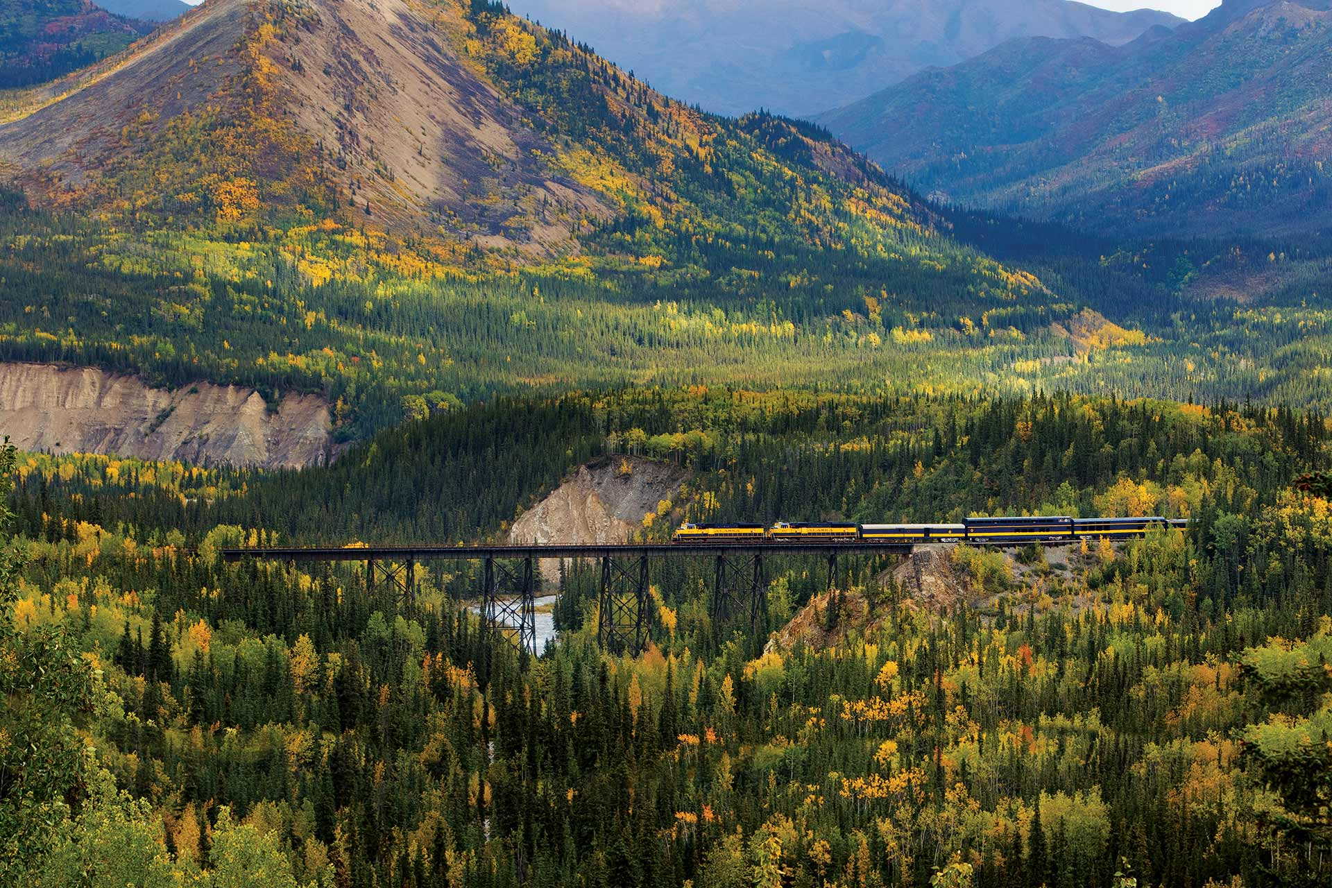 Adventure Class – Onboard Services. From Anchorage, the Glacier Discovery stops briefly at the resort town of Girdwood before continuing on to Portage; here, guests may disembark to visit the Alaska Wildlife Conservation Center, home to black and brown bears, moose, caribou, wood bison and more. The train then travels through a mountain tunnel to Whittier, providing a perfect connection for a glacier and wildlife cruise in Prince William Sound. The train returns to Portage to pick up Wildlife Center guests and other passengers before continuing south, away from the road system and into the wilds of the Chugach National forest. The next stop is the Spencer Glacier Whistle Stop, a backcountry paradise developed in partnership with the Chugach National Forest Service. A well-maintained, 1.3-mile gravel path leads from the tracks to the edge of Spencer Lake and a rafting, hiking, and kayaking around the glacial lake are all available as day trips. Staying on the train has its appeal, however, as Bartlett Glacier and Trail Glacier come into view. Many consider this the most scenic stretch of track, as the train winds along the Placer River Valley and amid the alpine meadows of Grandview. Expires 8/31/2021