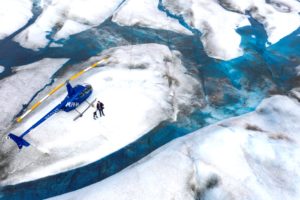 Valid for the 2020-2021 Seasons. DEPARTS FROM KNIK RIVER LODGE: Our signature flight seeing and glacier landing tour. With 30 minutes of helicopter flight seeing in the Knik River Valley, this tour includes a glacier landing right in the middle of Knik Glacier where you can get out of the helicopter and spend 30 minutes exploring ice thousands of years old with your pilot/guide. See the azure blue melt pools,crevasses and the bizarre ice formations created by water, wind and the sun.