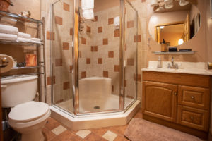 Upon entering cabins 1, 2, or 3, you will immediately feel at home. You will notice a beautiful forest behind the cabins, there is a small creek in the forest that also runs behind these cabins, providing a calming and wonderful sound. A sliding glass door leads out back to the porch, which is a great place to relax and enjoy the creek. The private bathroom is located to your left, as you first come inside. The bathroom is stocked with all linens and paper goods you will need during your stay. The bathroom has a sink, toilet and a shower stall. Back in the living room, there is a small but efficient kitchenette. A sink, a dorm sized refrigerator and a two burner stove top. Each of the cabins at Drifters Lodge offers incredible views of the Kenai River from the upstairs room. We are in the “Land of the Midnight Sun”, and in the summer, it is often difficult to get used to all of the sunlight. We have thick drapes for all of the windows to ensure you are able to get a good night’s sleep before your fishing or rafting excursion the next day.