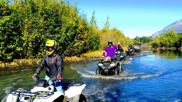 Wind through forest trails. Rollover silt dunes. Splash through water crossings. Ride across wide-open glacial gravel bed. Lunch next to Knik Glacier, a breathtaking river of ice. Covering the best sections of trails in the Knik River valley with the best areas to spot moose and Dall sheep, this ATV day tour is the Alaskan adventure you’re looking for. Knik Valley is the hidden gem right outside Anchorage. This is a great way to get a taste of Alaskan off-roading. Riding is always spectacular in this scenic valley. You’ll see Knik Glacier in the distance if the weather is clear, get right up close to it. Weather usually isn’t a factor. We can almost always see the glacier from Lake George. We also see more wildlife on the full day. And, lunch is included. Expires 8/31/2021